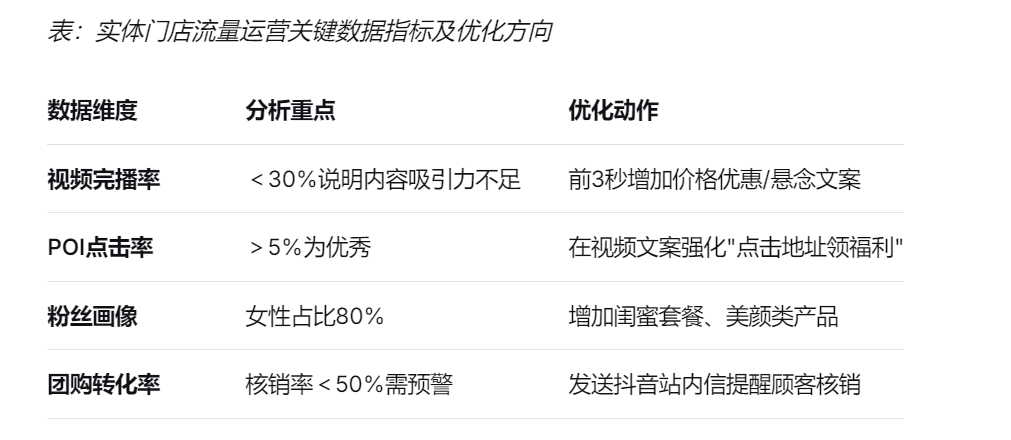 - POI地址运营 :POI(Point of Interest)页面是门店在抖音的线上门户,优化包括封面图、商家相册、活动信息和用户评价四大要素。精心优化的POI页面能够显著提升用户到店意愿,通过引导到店顾客发布视频时@商家账号,精选优质评价置顶,形成良性循环。