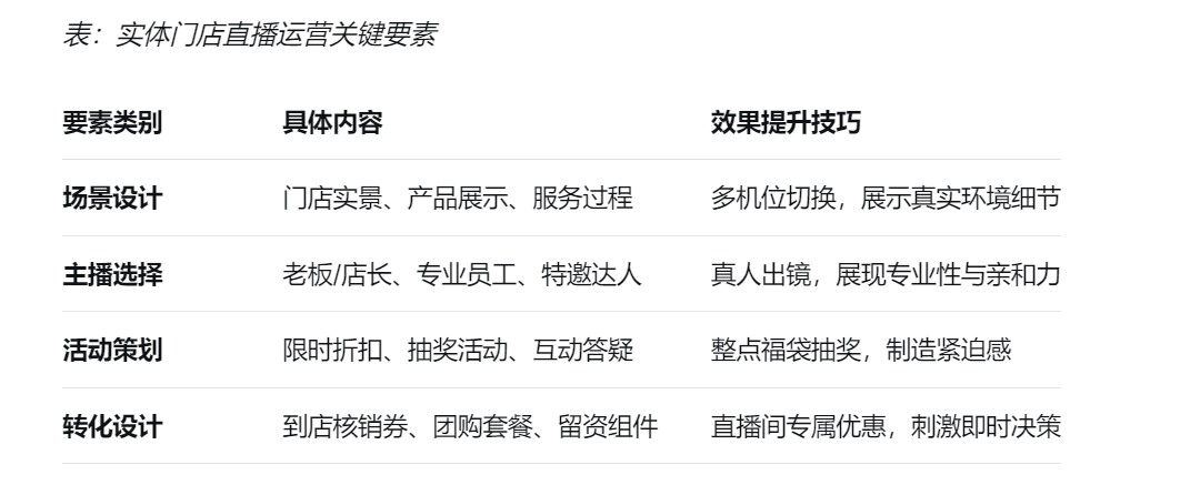 - 常规直播 :门店日常经营展示、产品介绍、基础答疑;